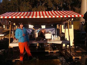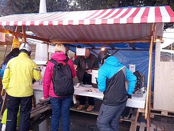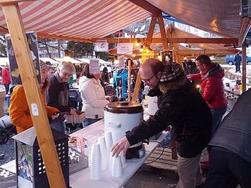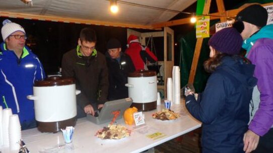 21.12.2014 | PH | Witterungebedingt fand der diesjährige Weihnachtsmarkt nicht auf, sondern im Seehofseeli statt. Ob die Organisatoren schon an die Beschaffung einer Schneekanone für kommende Jahre gedacht haben? Die anwesenden Aktiven, Oldies und Besucher durften auf jeden Fall feststellen, dass ein guter Glühwein zum Glück nicht nur gegen kalte, sondern auch nasse Füsse hilft.