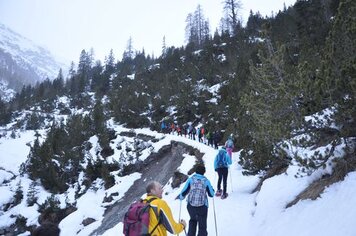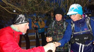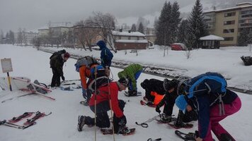 26.02.2016 | PC | Am 20.2.2016 machte sich die der TV Davos auf den Weg zum Gasthaus Mühle im Sertig. Die Wanderung startete um 17:00 Uhr am Bahnhof Platz, jedoch schlossen sich noch weitere Personen der Gruppe an und wir so wanderten circa 45 min, bis es eine wohlverdiente Röteli-Pause unter einem uns Schutz spendenden Baum gab. Gestärkt und wieder voller Energie liefen ging es nun durch den ''Schneesturm'' weiter, bis Alle eine Stunde später an ihrem Reiseziel ankamen. Das Käsefondue schien allen zu schmecken und auch das Dessert (Wallnusseis mit Sahne und Röteli) kam gut an. Mit Erstaunen wurde festgestellt, dass es regnete als die Gruppe sich um 22:45 Uhr auf den Heimweg machte. Nach und nach gingen Alle ihre eigenen Wege. Die Schneeschuhe wurden schon bald ausgezogen, da sich an den Schneeschuhen, der mittlerweile schwere und klebrige Schnee, angesammelt hatte. Als die Gruppe durchnässt Davos durchquerte, zog sie viele neugierige Blicke auf sich, uns so wurde der TVD als eine gefährilche Strassengang gehalten, die noch zu später Stunde um die Häuser zieht. Jedoch kamen auch die letzten Wanderer um ca. 00:30 Zuhause an.