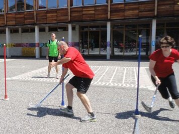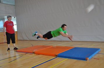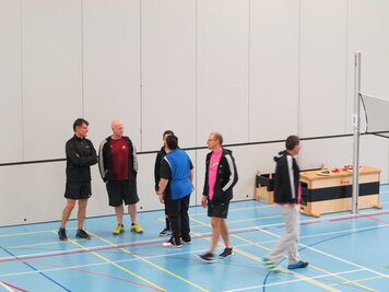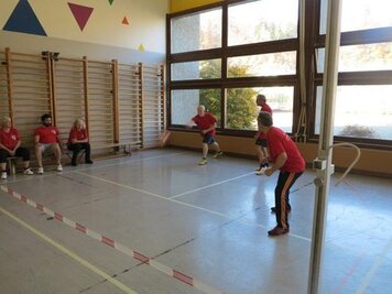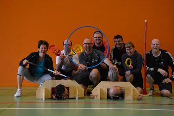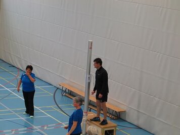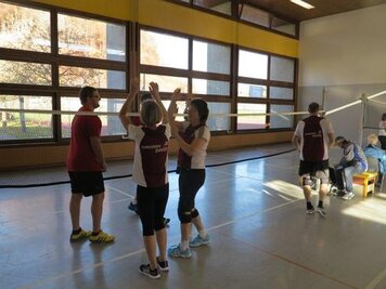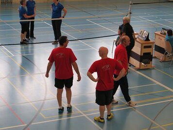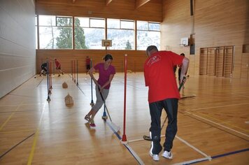Marco und Hitsch riefen den 4 Damen und 9 Oldies bei den Trainings am Samstag und Sonntag die Knackpunkte der 6 Wettkampfdisziplinen wieder in Erinnerung. Mit viel Engagement absolvierten wir dann die Übungen in diversen Varianten. Marcos Kreativität war aber nicht nur in der Turnhalle zu spüren, sondern auch in seiner Rolle als Schreiber beim Jassen!