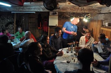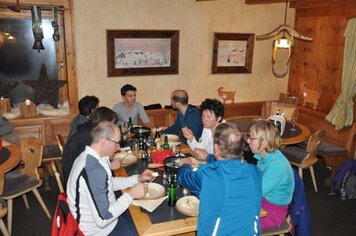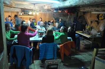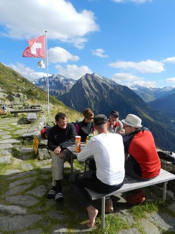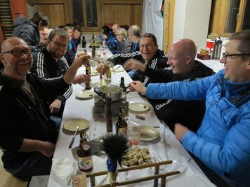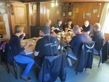 15.09.2015 | PH | Entgegen dem Begriff und der in den letzten Jahren aufkommenden Tradition stand diese Turnfahrt wider mal ganz im Zeichen des Laufens und nicht des Fahrens. Von Klosters aus machten wir uns durchs Schlappin auf den Weg zur Fergenfurgga. Nach mehreren Stunden Aufstieg erreichten wir den auf 2650 Meter über Meer liegenden Übergang. Danach ging es auf den rund einstündigen Abstieg zur Fergenhütte, wo wir die Nacht verbringen sollten. In der Hütte angekommen wurden wir von Ladina und Helfern vorzüglich verpflegt, danach verbrachten wir bei Wein und Bier und in Gesellschaft einiger unerwarteter Gäste einen gemütlichen Abend in der Hütte.