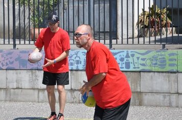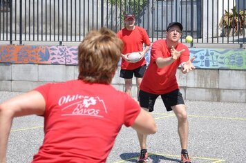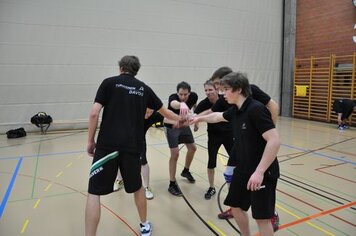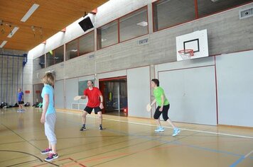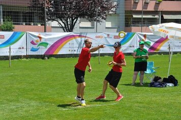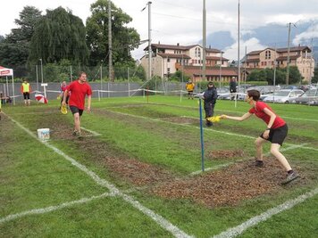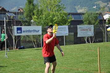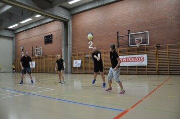 Das erste Team, Davos 2, mit Marco, Gabi und Anita war für die erste Spielrunde um 13.00 Uhr eingeteilt. Wir wärmten uns für die Spiele auf, während dem die anderen in einer Pizzeria noch etwas zu Mittag assen. In der ersten Runde qualifizierte sich Davos 2 mit sehr guten Resultaten für die Finalspiele. Die Gegner setzten sich aus einigen Mannschaften mit sehr motivierten, guten Spielern und aus zwei, drei Anfängern Mannschaften zusammen. Um 14.00 Uhr starteten Davos 1 mit Hänse, Hitsch und Pablo sowie Davos 3 mit Ricci, Hanni, Curdin und Andreas in die zweite Spielrunde. Auch diese beiden Teams qualifizierten sich problemlos für die Finalrunde. Das spannendste Spiel in dieser Runde war das Prellball-Duell zwischen Davos 1 und Davos 3. Mit vielen spannenden und trickreichen Ballwechseln war dieses Spiel eines der schönsten, auch für die Zuschauer. Davos 3 entschied dieses Duell mit einem Punkt Vorsprung.