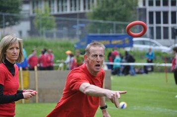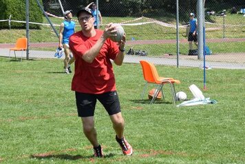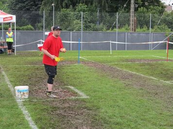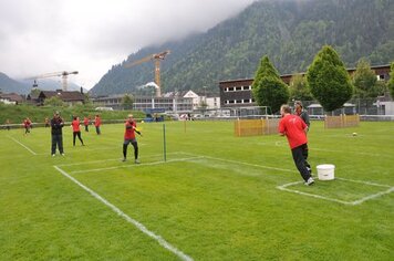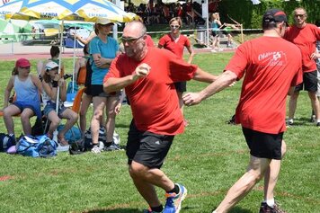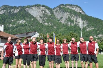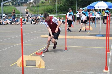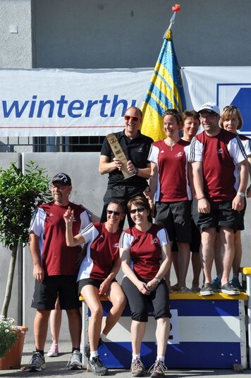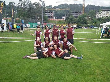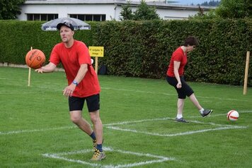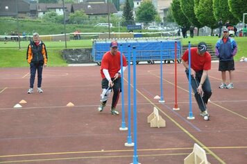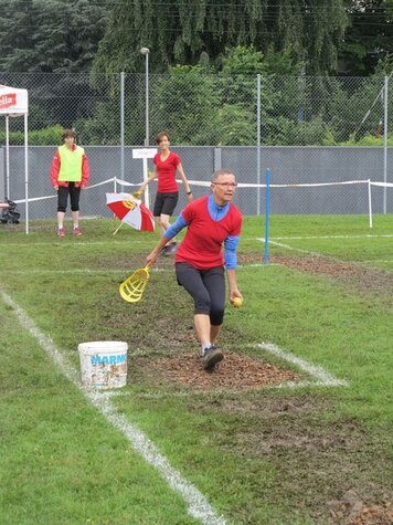Angespornt von den super Leistungen der Aktiven, begannen wir top motiviert unseren Wettkampf. Obwohl der erste Teil (Intercross und Fussball/Korbball) nicht mehr auf einer Wiese stattfand, sondern auf einem Acker durchnässten Untergrund, wegen des vielen Regens. Mit der Wetterbesserung, ab und zu zeigte sich sogar die Sonne und dem Wechsel der Unterlage, vom Acker auf Tartan und Teer, zeigten wir eine starke Leistungssteigerung je länger der Wettkampf dauerte. Mit dem Abschluss in unseren Paradedisziplinen (Tennisball/Rugby und Moosgummi) erreichten wir eine Punktezahl von 28.19, welche für den Ausgezeichneten 5 Schlussrang reichten.