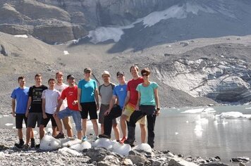08.09.2016 | PH | Auf der diesjährigen Turnfahrt stellte uns Thomi seine zweite Heimat, den Urnerboden, vor. Für die erste Verzögerung am Samstag sorgte die Seilbahn, deren Kapazität dem Ansturm nicht ganz gewachsen war. Als sich alle auf dem Fisetenpass wieder versammelt hatten, ging die Wanderung in Richtung Klausenpass los. Trotz den durchaus erträglichen Temperaturen nutzten einige Turner den Gletschersee im Schatten der Clariden Nordwand für eine kurze, wenn auch sehr intensive Abkühlung. Für die zweite Verzögung des Tages sorgte dann ein weiterer Turner, dessen Versuch, eine Moräne zu besteigen, leider scheiterte. Neun gesunde und ein humpelnder Turner machten sich dann etwas später auf den Weg zum Klausenpass, von wo aus deren acht noch zum Urnerboden abstiegen.
