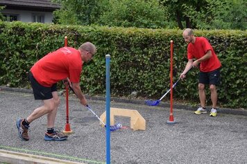 Am Nachmittag übten wir unsere Fit und Fun Disziplinen. Wie gewohnt, gab es Diskussionen oder lehrreiche Anregungen neben und auf dem Spielfeld. Zu diesem Zeitpunkt hatten wir die Sache trotz eines anstrengenden Morgens nicht schlecht im Griff. Steigerungspotenzial wäre aber auch noch vorhanden…
