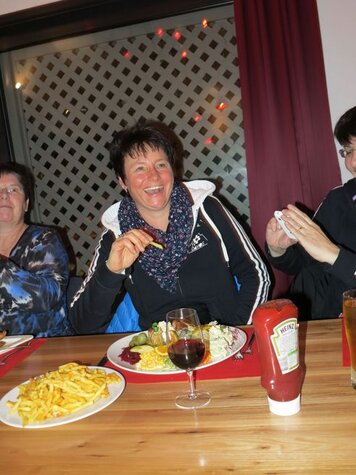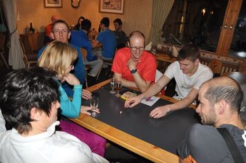 Beim abendlichen Spaghettiessen pflegten wir das gesellige Vereinsleben. Beim Kartenspielen und Schweine herumwerfen, konnte jeder an seinen taktischen Fähigkeiten feilen. Die Nacht verbrachten wir, wie immer, nicht alle gleich lang wach oder schlafend!