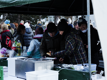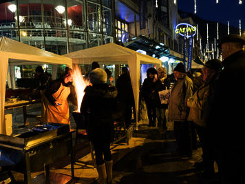 09.02.2015 | Bilder: Maic Fankhauser| Text: Patrik Herzog | Anlässlich der Feier zu 150 Jahren Tourismus fand letzten Samstag zum ersten Mal eine verkehrsfreie Promenade im Winter statt. Wie auch im Sommer war der Turnverein mit einem Verpflegungsstand präsent. Danke der Wärme des Grilles und der Getränke harrten einige Besucher doch noch weit nach Sonnenuntergang an unserem Stand aus, bis dann gegen neun Uhr auch die kälteresistentesten Besucher die Flucht in wärmere Stuben antraten.