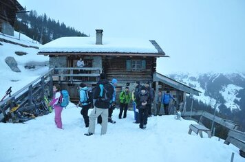 25.02.2014 | Fotos: Janik Mori, Rafael Herzog | Schneeschuhe statt Schlitten, Bärental statt Fideriser Heuberge, Bergbeizli statt Schirmbar – das diesjährige Programm des Fondueplausches versprach einige Änderungen. Rund 20 Oldies und Aktive liessen sich das nicht entgehen und machten sich letzten Samstag von Glaris auf die rund einstündige Wanderung auf die Bärentaler Alp. Nach dem Nachtessen und einigen Stunden gemütlichen Beisammenseins ging es dann im Licht der Stirnlampen wieder ins Tal.