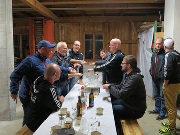 Die Teilnahme am Turnier und weite Reise ins Emmental wurde auch zum Anlass für einen Vereinsausflug genutzt. Im Anschluss an das Turnier wurde der Doppelsieg bei einem feinen Fondueplausch auf dem Bauernhof Riffenloch gefeiert. Übernachtet wurde im Stroh. Am Sonntag stand dann der Besuch der Schaukäserei in Affoltern i. E auf dem Programm, wo das Käsen von Hand noch vermittelt wird und auch alle Hand anlegen konnten. Ob das Mitwirken von so vielen Händen zu einem guten Ergebnis geführt hat, stellt sich dann im März heraus, wenn der Käse nach der Reifung zugestellt wird.