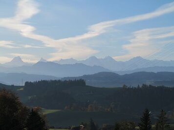 Nach dem Morgenessen fuhren wir weiter Richtung Lüderenalp. Dort oben erwartete uns ein wunderschönes Panorama mit den Berner Alpen: Eiger, Mönch, Jungfrau, Schreckhorn und viele andere uns nicht bekannte Gipfel sowie die hügelige Landschaft des Emmentals.